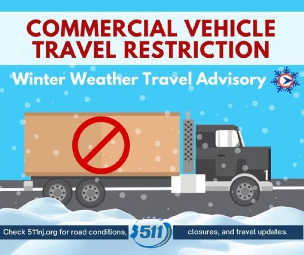 NJDOT Imposes Commercial Vehicle Travel Restrictions Ahead of Major Winter Storm Starting Sunday